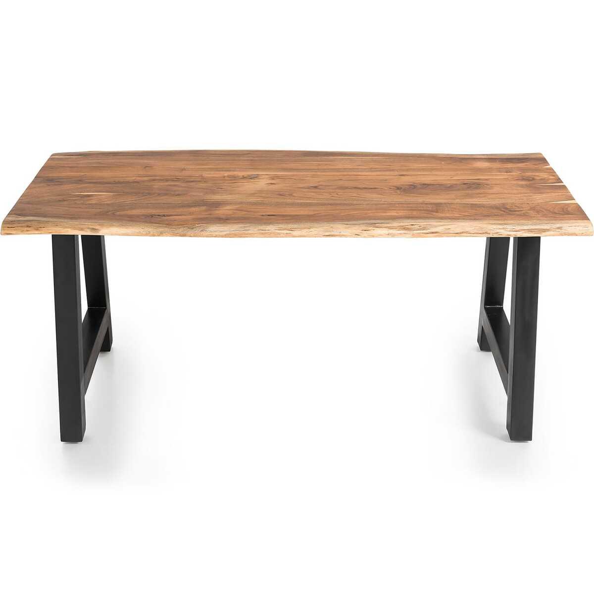 I mobili in legno massiccio di acacia sono mobili di una bellezza senza tempo che non passano mai di moda. Il piano del tavolo, spesso 35 mm e dalla forma naturale, è realizzato in legno di acacia. È stato oliato e cerato due volte, rendendo la superficie resistente e idrorepellente. La struttura ad A in metallo nero conferisce al tavolo un'eccellente stabilità ed è la perfetta controparte del bellissimo piano in colore naturale. Questo tavolo per la sala da pranzo non è solo un posto dove sedersi e mangiare. Porta un pezzo di natura nelle vostre quattro mura. Nota bene: poiché questo tavolo in legno massiccio è un prodotto naturale, possono essere presenti nodi o decorazioni di colore diverso, ma non si tratta di difetti, bensì di sottolineare il carattere individuale del legno vero, e anche la profondità può variare a causa del design naturale. Tutte queste differenze rendono questo tavolo da pranzo davvero unico.Tavolo da pranzo con struttura moderna ad A, realizzato in legno massiccio di acaciaLa superficie a doppia cera rende il legno particolarmente resistenteI bordi dalla forma naturale conferiscono al piano del tavolo un fascino naturalePiano del tavolo di 3,5 cm di spessoreStruttura stabile grazie a solidi tubi metallici da 75x75 mm