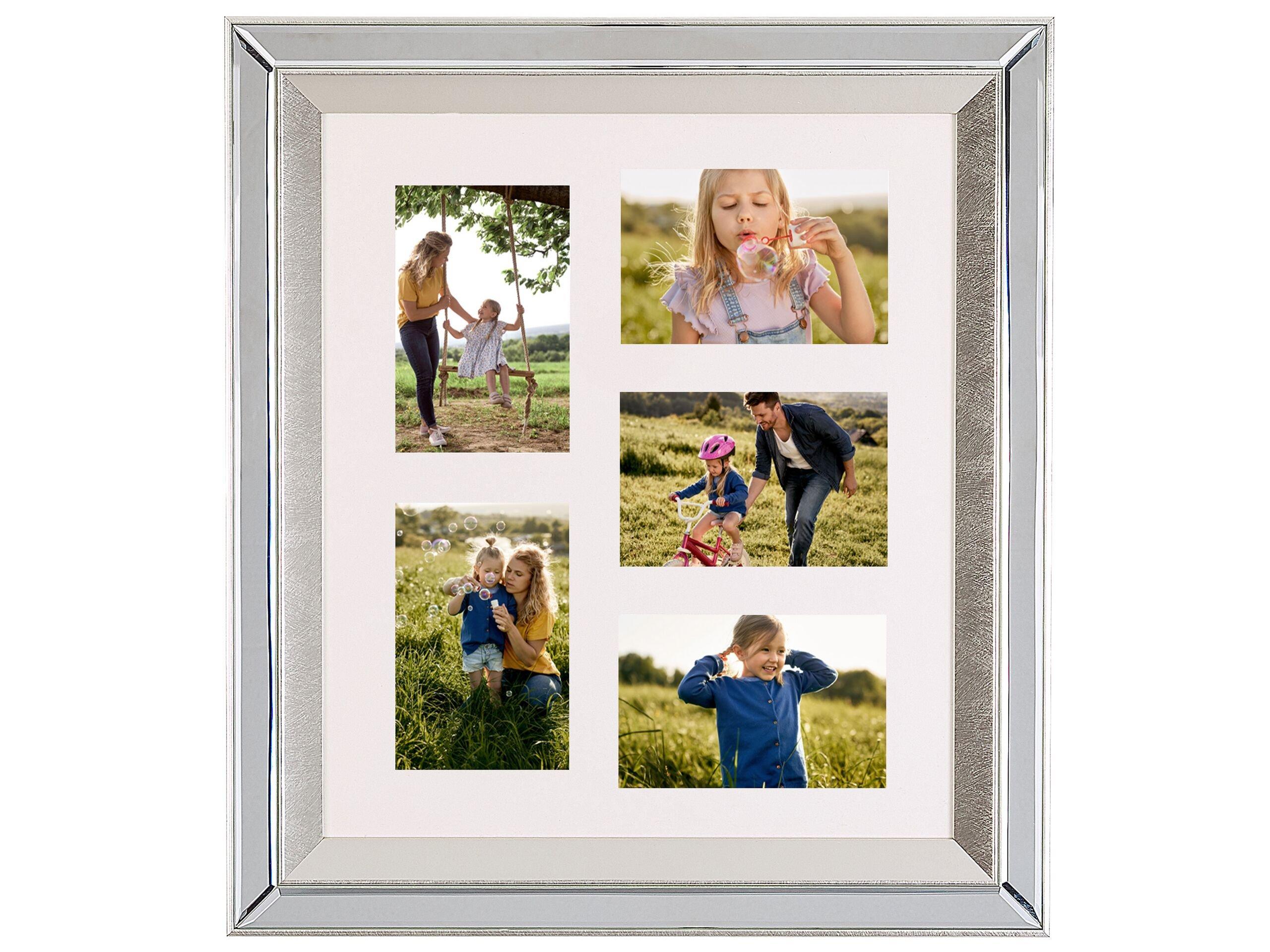Cornice per foto stile collage. Mostra i tuoi ricordi più belli con questa cornice eccezionale. Appesa in soggiorno, camera da letto o corridoio, conferisce un fascino glamour a qualsiasi ambiente con la sua caratteristica superficie a specchio. Potrai metterci fino a cinque foto, in modo da poter ricordare le tue vacanze memorabili o le persone che ti stanno a cuore. Grazie a ganci ben distribuiti, la struttura può essere appesa sia verticalmente che orizzontalmente.