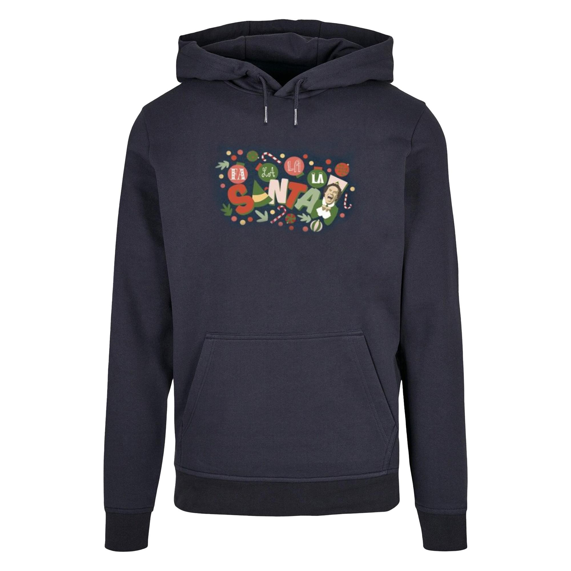 Questa felpa con cappuccio presenta una stampa grafica festiva "Fa La La Santa" sul davanti, rendendola un'aggiunta allegra a qualsiasi guardaroba casual. Il design include vari elementi a tema natalizio, aggiungendo un tocco giocoso.
