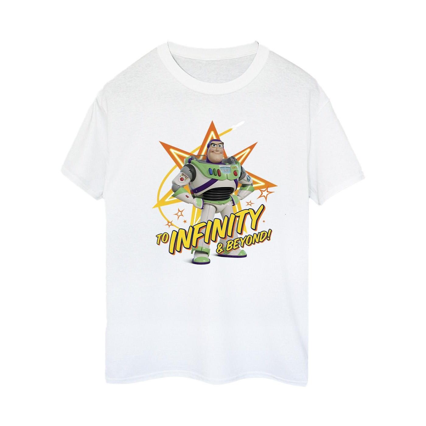 Questa T-shirt presenta una vivace stampa grafica di Buzz Lightyear di Toy Story della Disney Pixar, accompagnata dalla sua iconica frase "Verso l'infinito e oltre!". Il design è ambientato su uno sfondo a stella, rendendolo un pezzo eccezionale per i fan.