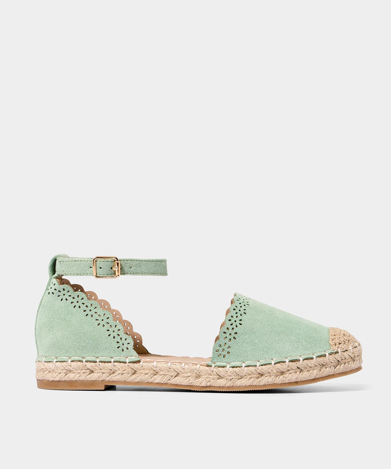 Queste espadrillas basse presentano un affascinante motivo floreale, aggiungendo un tocco di eleganza a qualsiasi outfit. Il design include un bordo smerlato con delicati dettagli intagliati, che ne migliorano l'estetica. Un cinturino alla caviglia con chiusura a fibbia assicura una calzata sicura e confortevole.