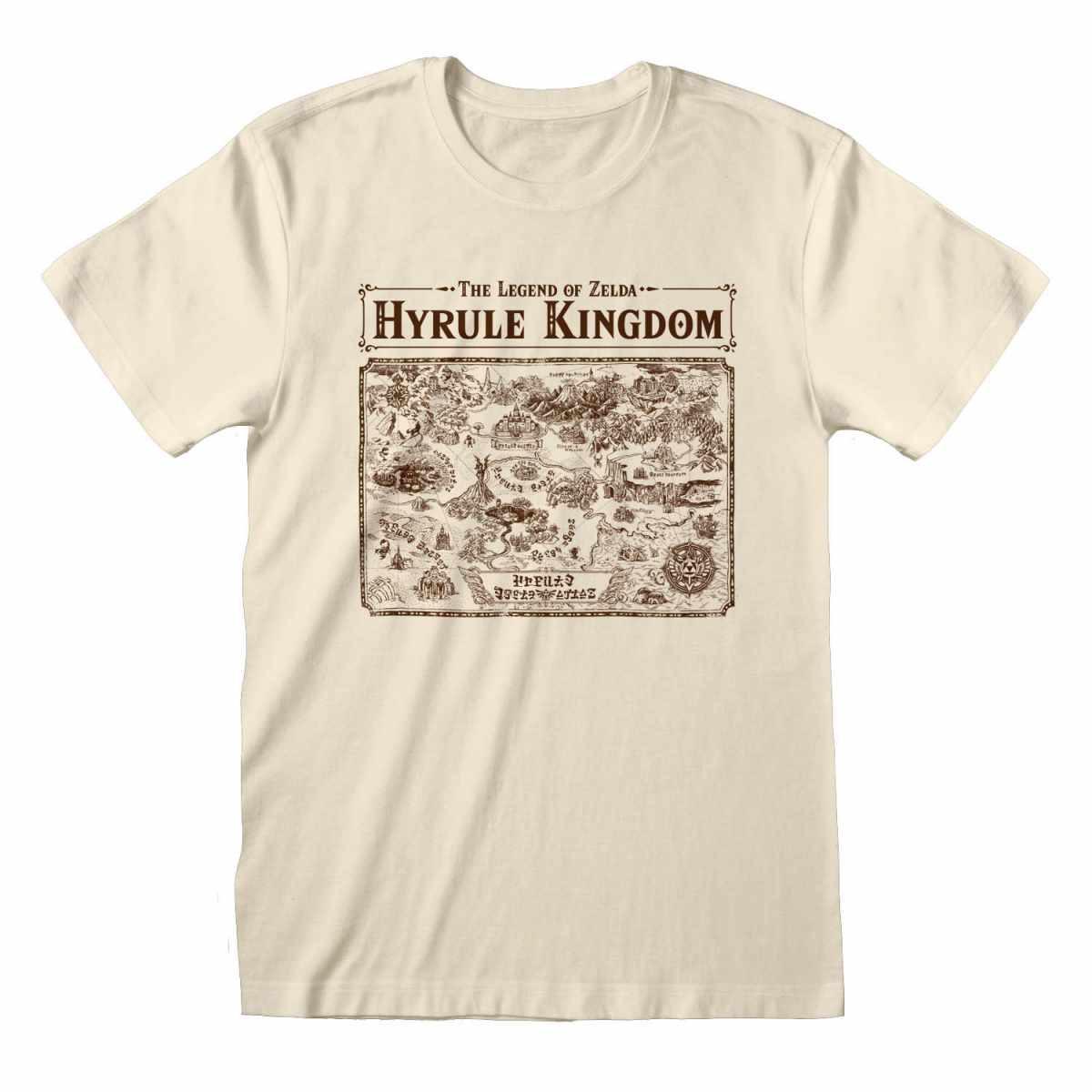 Questa T-shirt presenta una mappa dettagliata del Regno di Hyrule da The Legend of Zelda. Il design cattura l'essenza del gioco amato, rendendolo un capo distintivo per i fan.