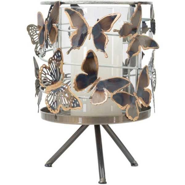 Portacandele realizzato in metallo e vetro con spirale di farfalle dal design particolare che rende speciale ogni stanza.