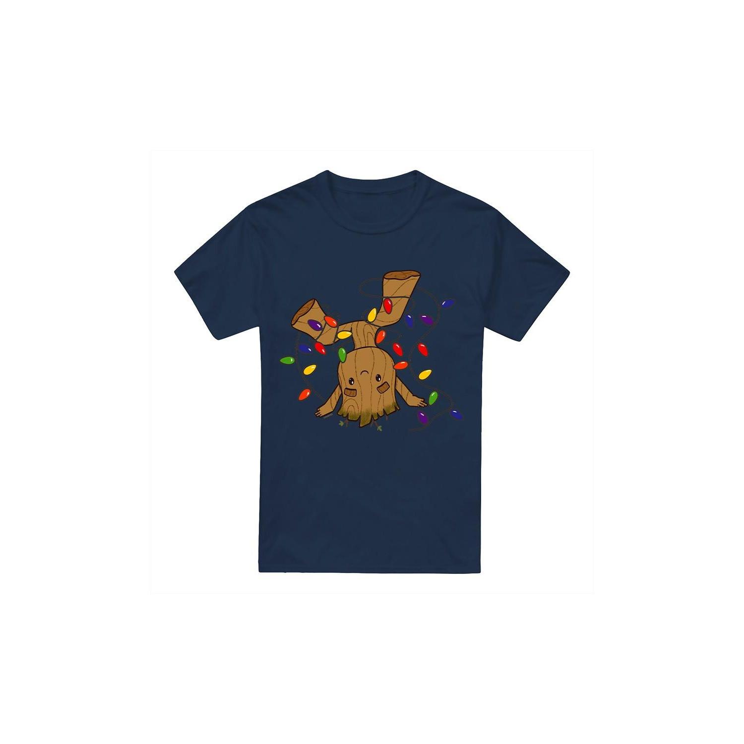 Questa T-shirt presenta una giocosa stampa a tema natalizio di Groot, rendendola un'aggiunta festiva a qualsiasi guardaroba casual. Il design mostra Groot impigliato in luci di Natale colorate, aggiungendo un tocco di allegria natalizia.
