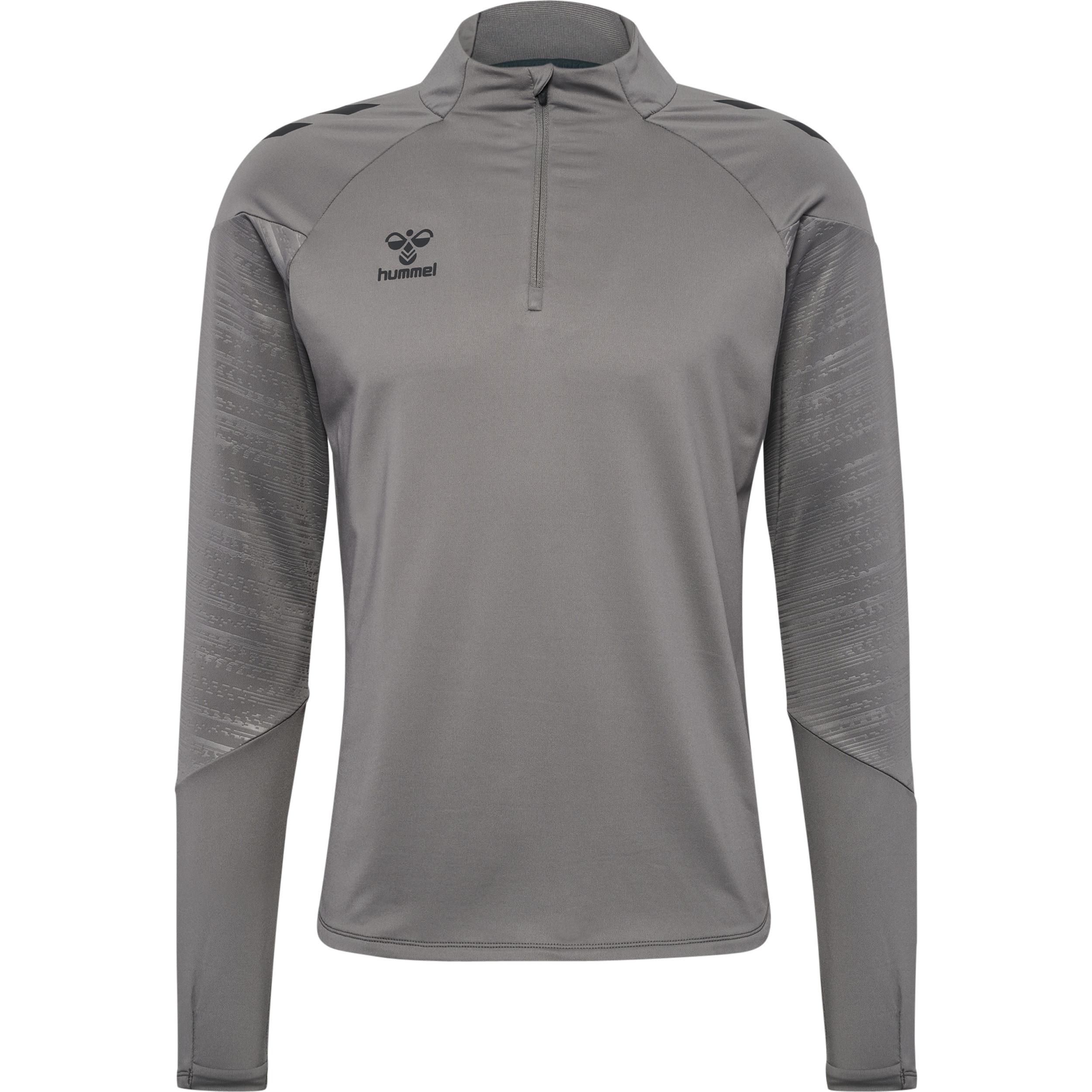 Il hmlPRO TRAINING HALF ZIP è realizzato in poliestere riciclato e dispone di una mezza chiusura lampo davanti con un garage per la cerniera per evitare sfregamenti sul mento. I fori per i pollici ai polsi offrono calore in più e una vestibilità sicura. La tecnologia BEECOOL garantisce traspirabilità e asciugatura rapida, mentre l'elasticità integrata offre flessibilità. hummel i dettagli del marchio completano il look.