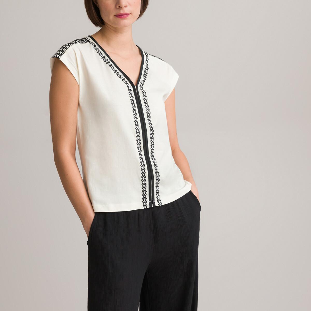 La Redoute Collections T-shirt ricamata scollo a V