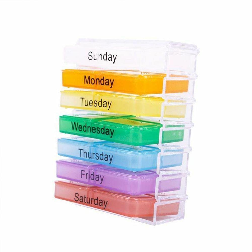 Con questo portapillole facile da usare puoi raccogliere un'intera settimana di medicine in un unico posto! Ogni giorno ha la sua scatola con il suo colore ed è diviso in 4 scomparti più piccoli che ti consentono di ordinare la tua dose per colazione, pranzo, cena e prima di coricarti. Un modo pulito e pratico per tenere traccia delle tue pillole!