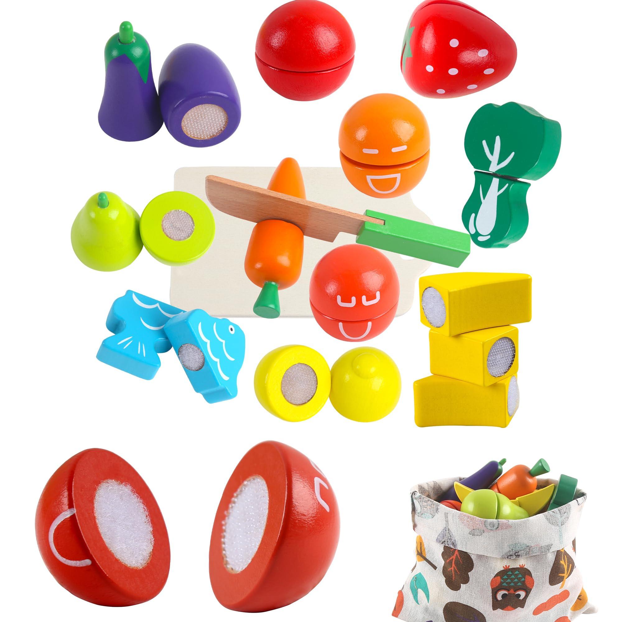 Activity-board Kinderküchenzubehör aus Holz Küchenspielzeug Obst und Gemüse schneiden Lebensmittelspielzeug Rollenspielzeug