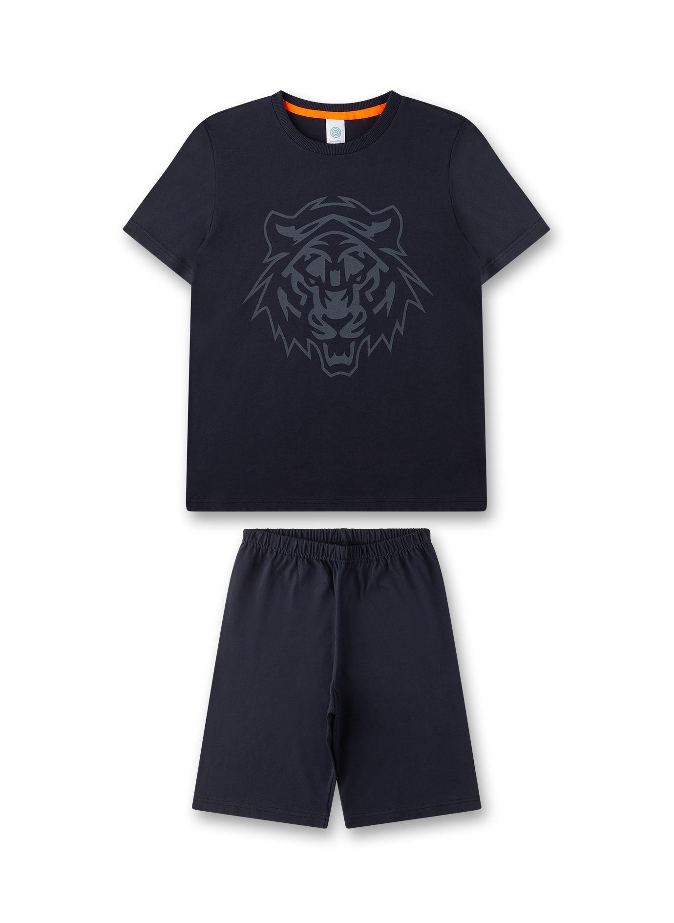 Pigiama corto per ragazzi del marchio Sanetta. T-shirt con grande motivo sul davanti e scollatura rotonda. Pantaloni del pigiama corti monocolore.