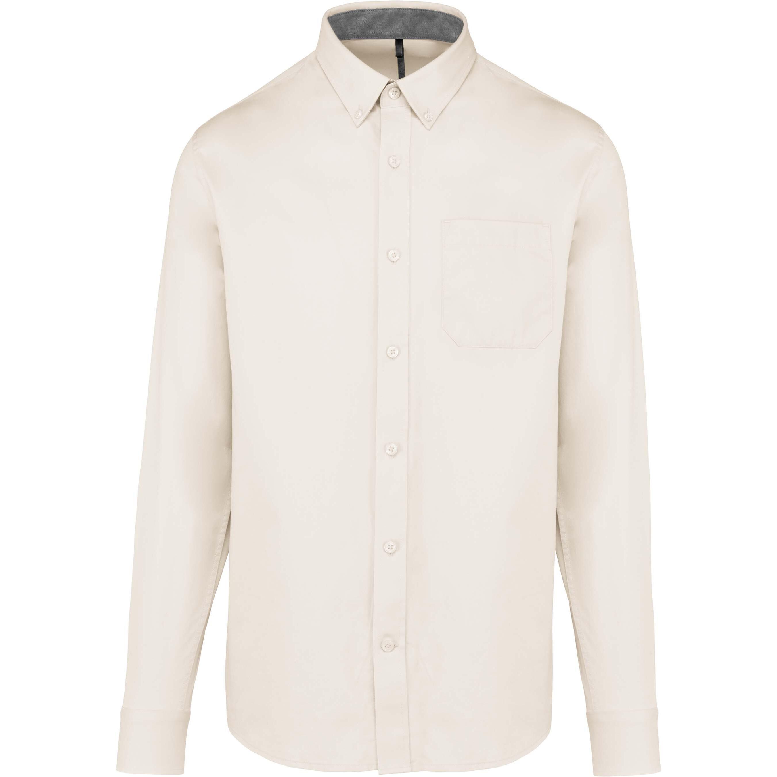 Questa camicia a maniche lunghe è realizzata in 100% cotone con un tessuto twill effetto pelle di pesca. Presenta un colletto abbottonato e un'abbottonatura completa per un aspetto raffinato. Una singola tasca sul petto aggiunge un dettaglio funzionale al design.