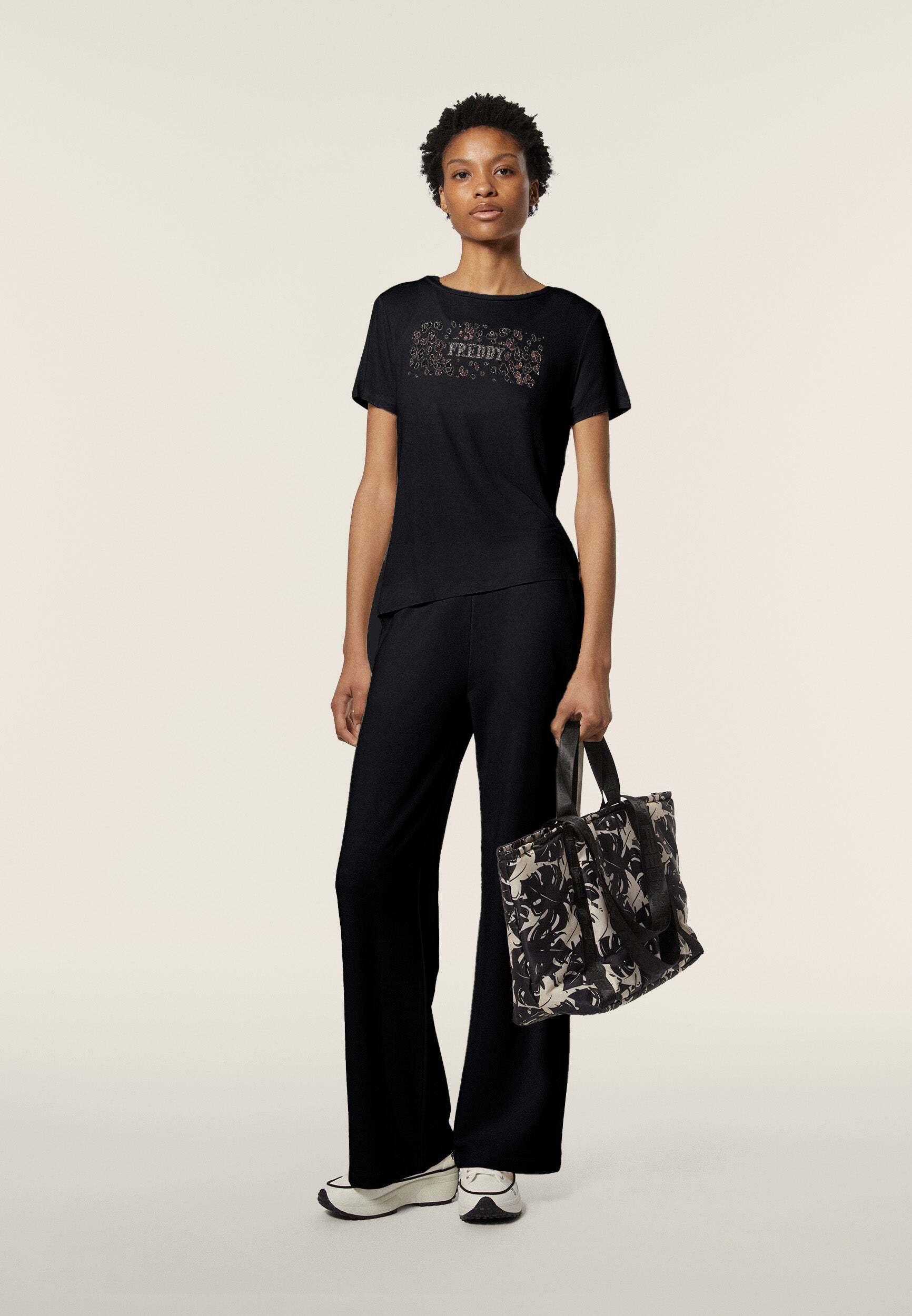 FREDDY T-Shirt Maniche Corte Logo Stampa Leopardata
