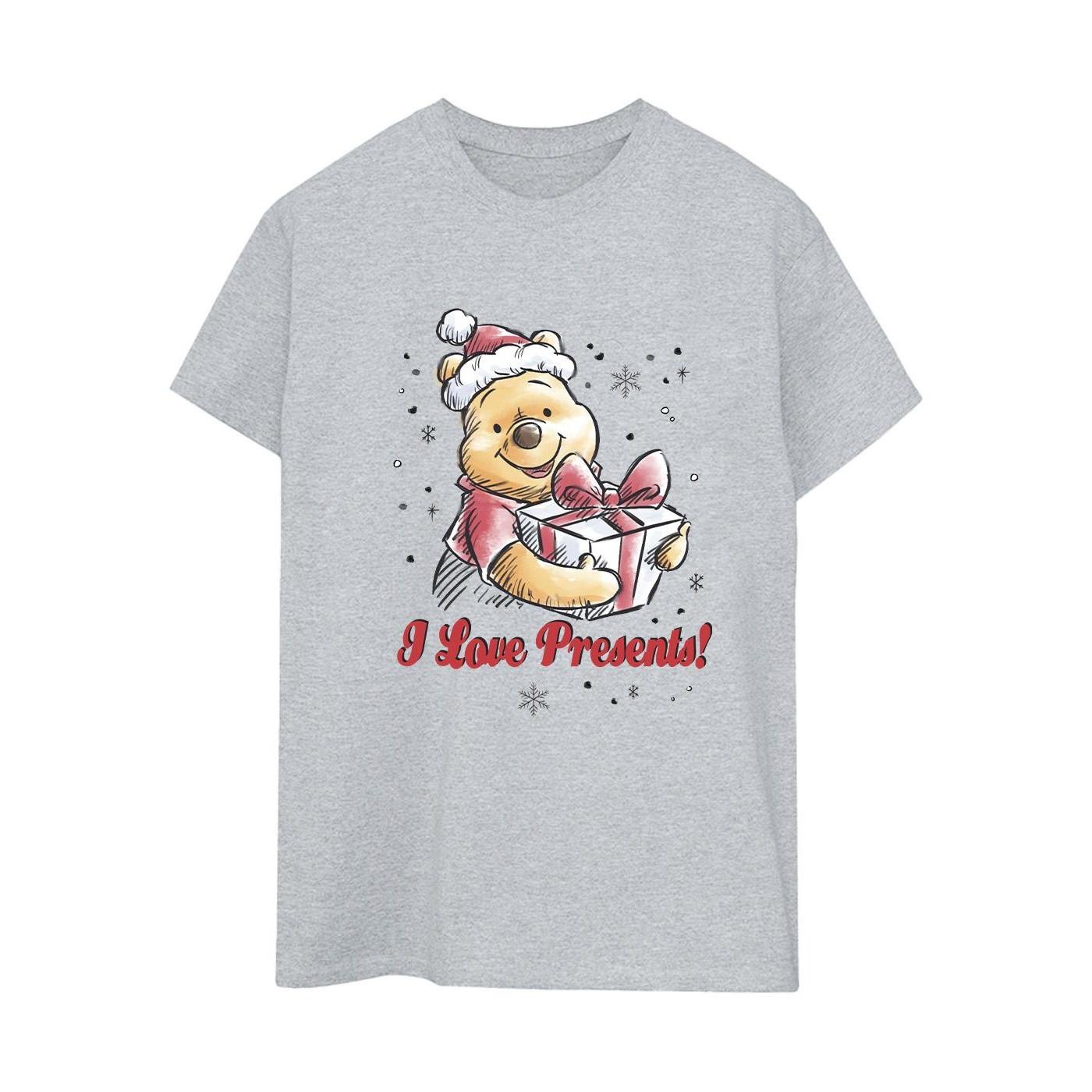 Questa T-shirt presenta una stampa grafica festiva, rendendola un'aggiunta affascinante a qualsiasi guardaroba casual. Il design mostra un amato personaggio con un cappello di Babbo Natale, che tiene un regalo incartato, circondato da fiocchi di neve e la frase "I Love Presents!". La T-shirt è ufficialmente licenziata e realizzata in cotone ring-spun, offrendo una sensazione super morbida e una vestibilità rilassata e ampia.