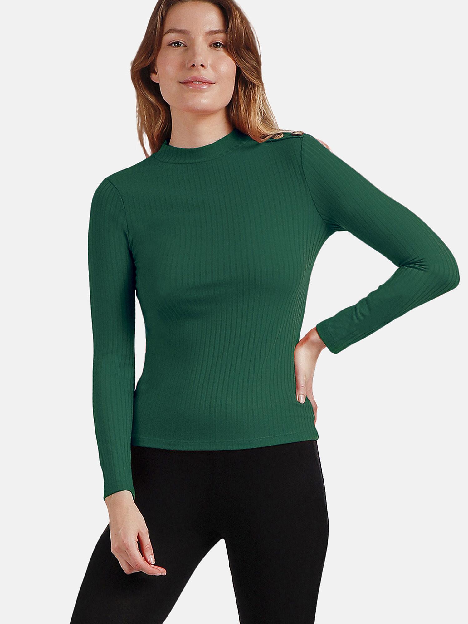 Admas Perkins Top Maniche Lunghe Costine Collo Alto