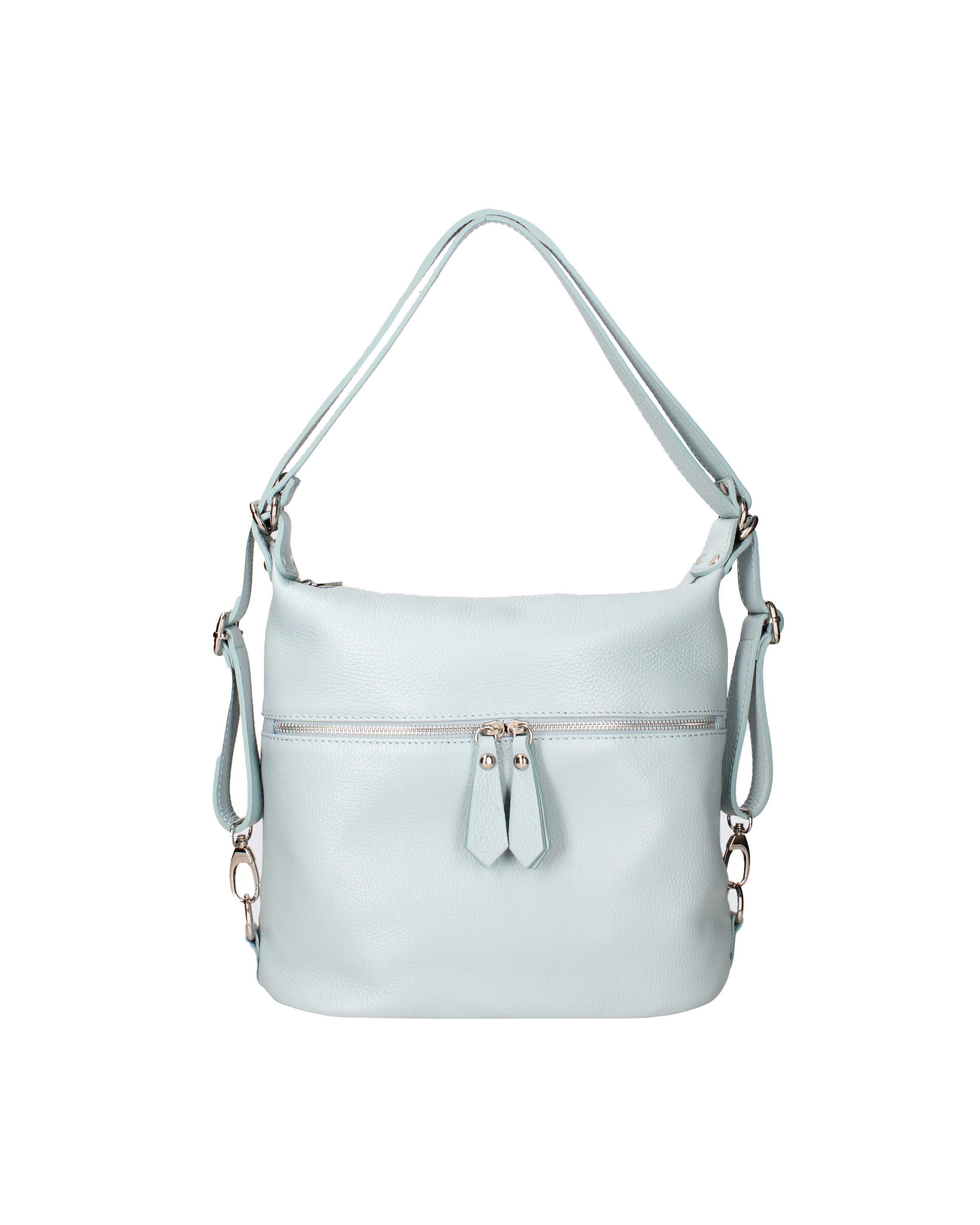 Borsa a tracolla da donna si trasforma in uno zaino con cerniera. Uno con cerniera e due tasche interne aperte. Una parte anteriore con cerniera e una cerniera posteriore tasche esterne. Regolabile in pelle - tracolla. Regolabile nella maniglia in pelle. Scomparti OneInner. Borsa a tracolla in uno zaino | Materiale esterno femminile in tessuto di cotone al 70% - 30% poliestere - interno. Misurazioni: 30x26x9 cm. Fatto in Italia