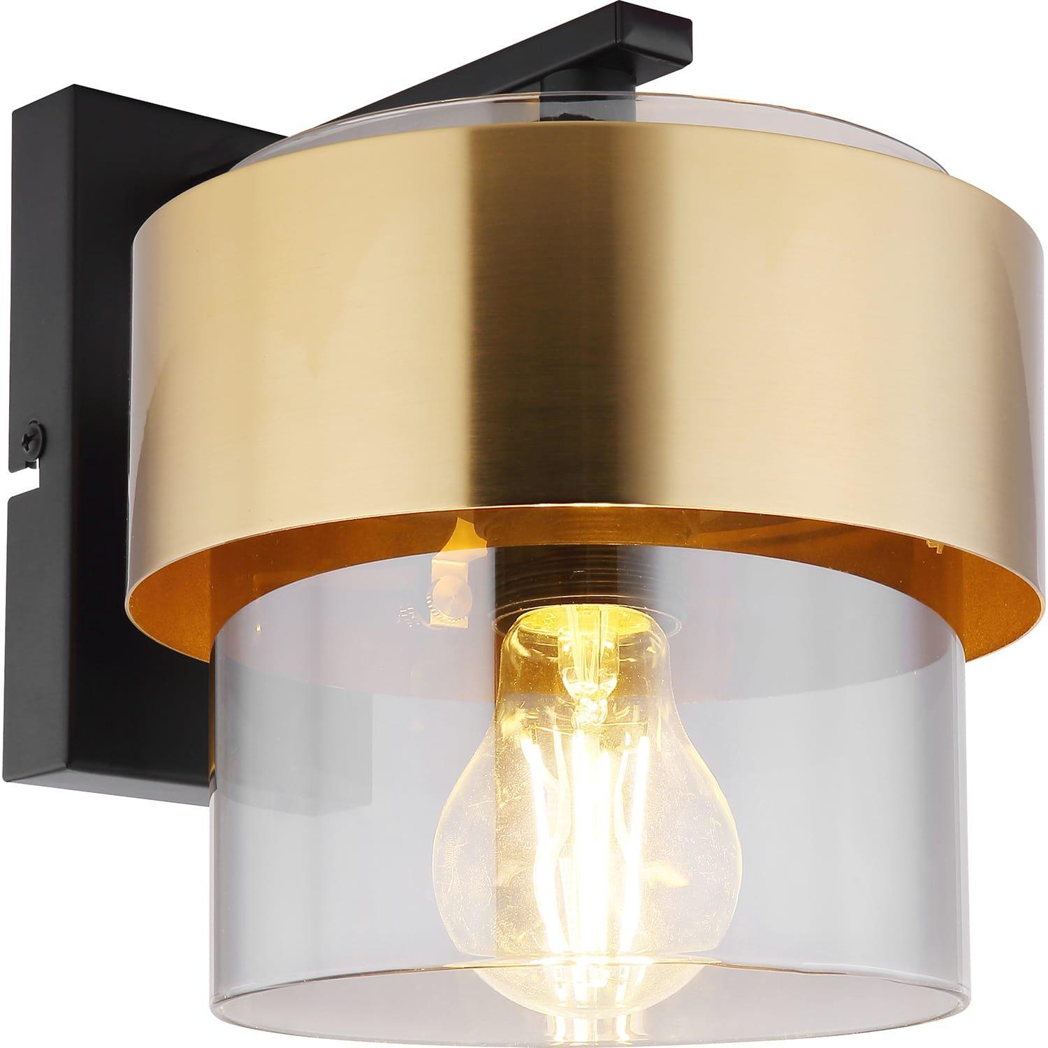 Lampada da parete metallo nero opaco, vetro, anello in ottone, direzione della luce: verso il basso, LxA: 180x215mm, AL: 235mm, esclusa 1x E27 60W 230V.