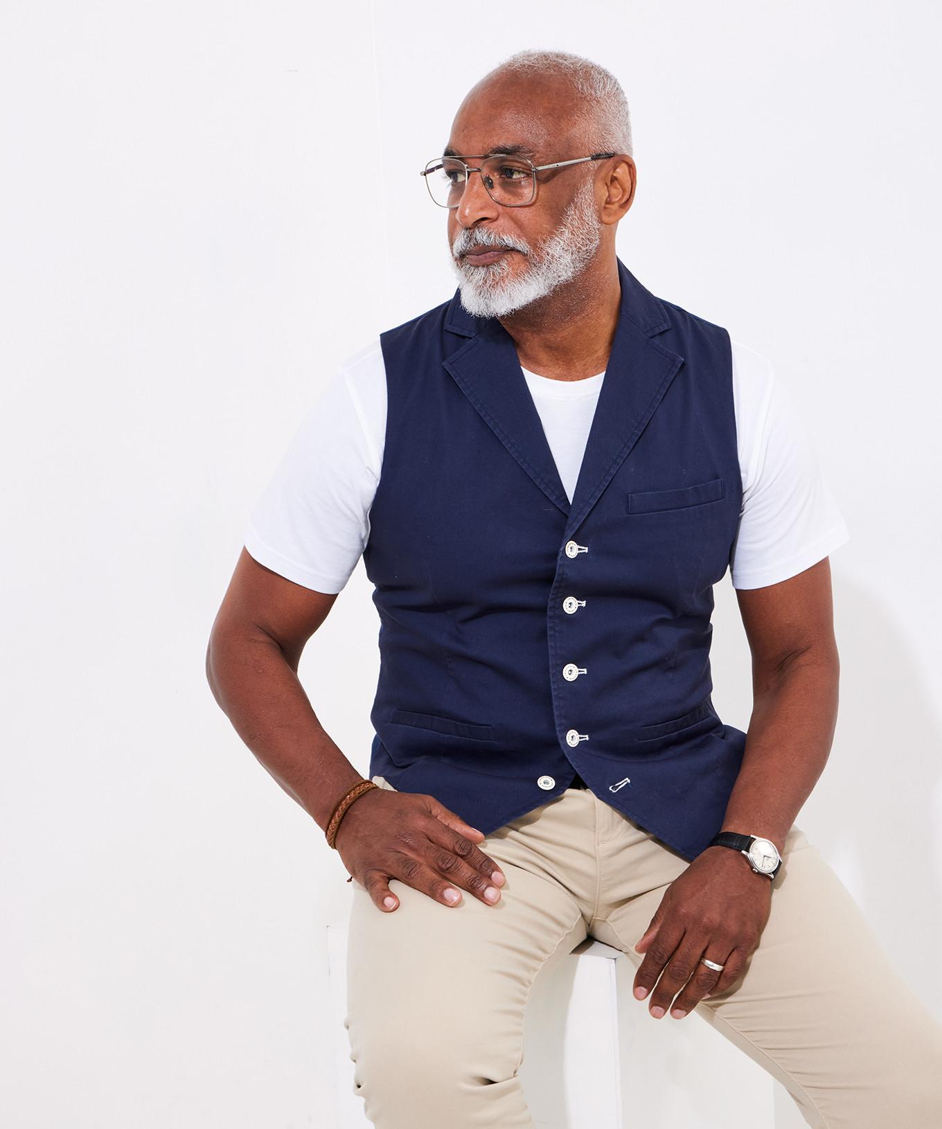 Questo gilet in twill workwear vintage offre un'aggiunta classica e versatile a qualsiasi guardaroba. Il suo design è ispirato all'abbigliamento da lavoro tradizionale, fornendo un'estetica senza tempo che può essere indossata in modo elegante o casual.