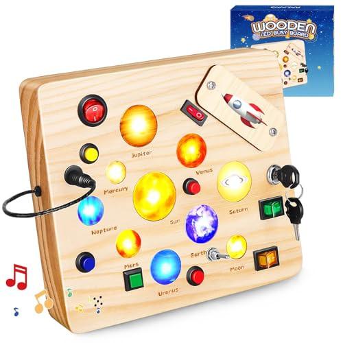 Activity-board Busy Board Spielzeug, Activity Board Holzspielzeug mit 12 Schaltern, 10 LED Lichtern und Kleinkind-Motorikspielzeug für Babys