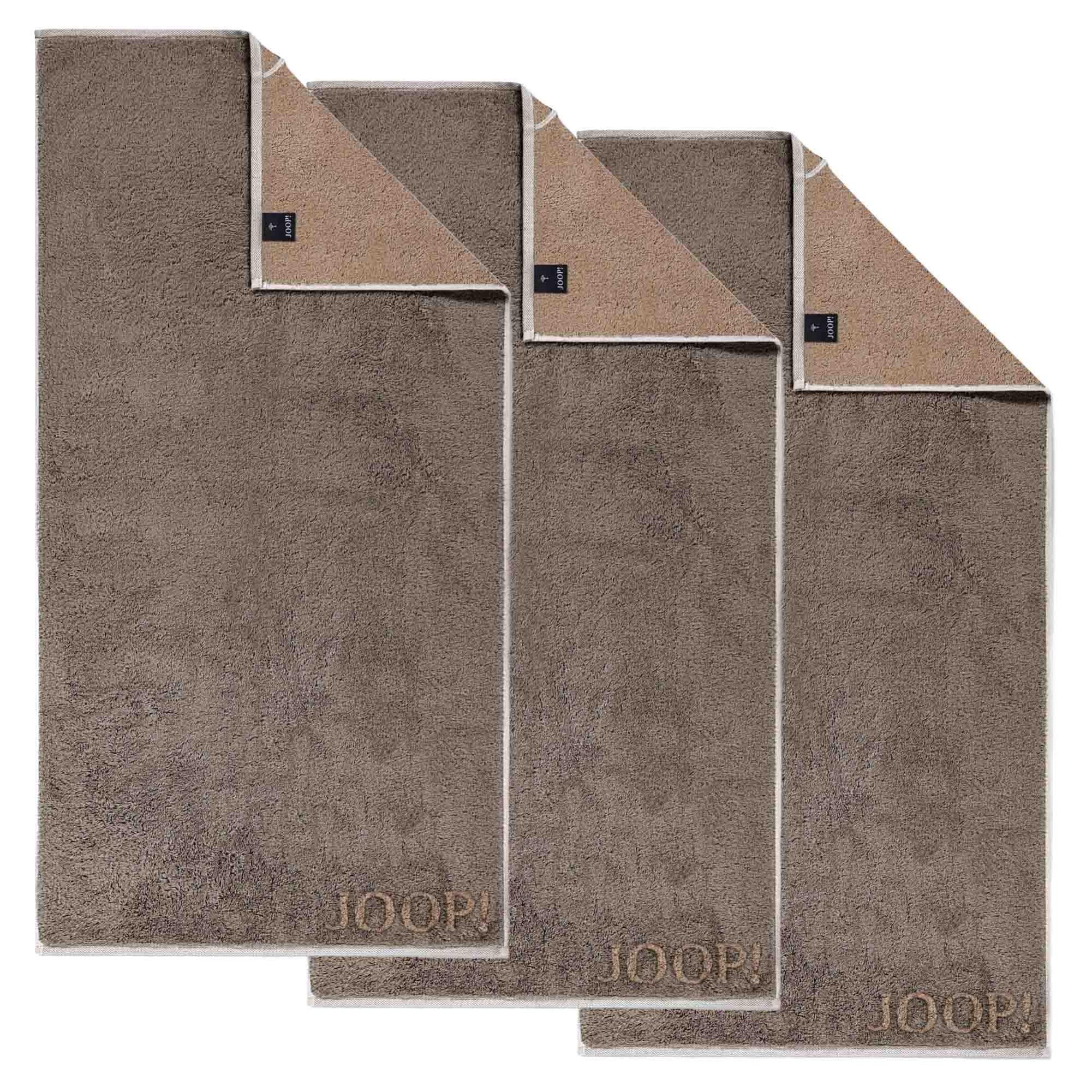 Tre eleganti asciugamani di JOOP!. In puro cotone di morbida spugna. Design monocolore con effetto double face.
