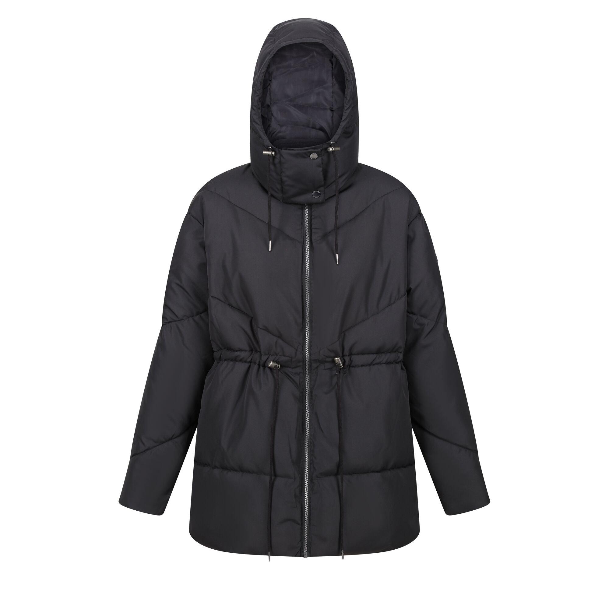 La giacca trapuntata Rurie offre un design moderno e confortevole, perfetto per le temperature più fresche. È dotata di una cerniera a tutta lunghezza e di un cappuccio per una protezione aggiuntiva. La giacca include una coulisse in vita, che consente una vestibilità regolabile e una silhouette lusinghiera.