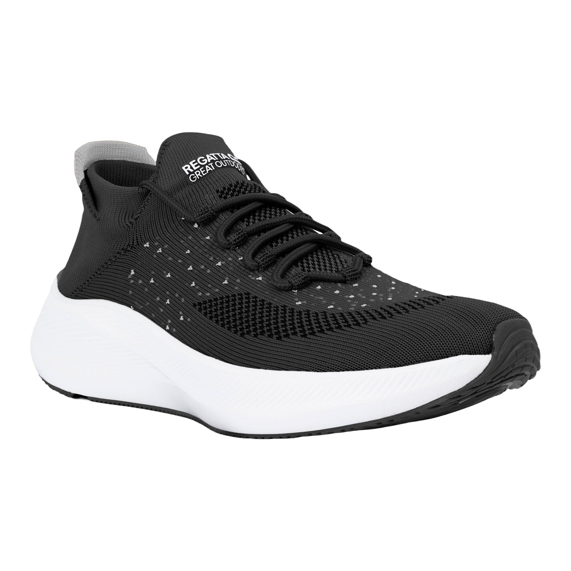 Tomaia: Jersey. Marca: Regatta. Soletta interna: imbottita, sagomata, TECFOAM. Intersuola: imbottita, EVA (etilene vinil acetato), ammortizzante. Suola: con tacchetti in silicone, TPR. Tecnologia del tessuto: traspirante, flessibile, leggera. Vestibilità a calzino. Tacco: piatto. Taglio basso. Design: logo, tinta unita. Stile della punta: rotondo. Allacciatura.