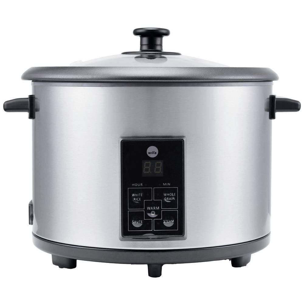 Il fornello a riso Wilfa RC10CD è un grande e avanzato fornello a riso, con il quale potrete cucinare il riso per tutta la famiglia, indipendentemente dalla varietà. Ha una capacità di 1,8 litri e convince con una potenza di 700 watt. È possibile servire il riso direttamente al tavolo, in quanto il dispositivo è dotato di un cavo rimovibile. In questo modo risparmierete la strada per il fornello a riso e non avrete bisogno di piatti aggiuntivi in cui il riso si può rifare. Con RC10CD è possibile cuocere il riso o ad es. Attenuare verdure e pesce. A tale scopo, è possibile scegliere tra 4 impostazioni per diversi piatti sul pannello di controllo. Grazie al display digitale, il dispositivo può essere utilizzato senza problemi. Inoltre, la funzione di mantenimento della temperatura aiuta a mantenere il riso a una temperatura piacevole. Grazie alla ciotola rimovibile con rivestimento antiaderente, il fornello a riso può essere pulito senza problemi.