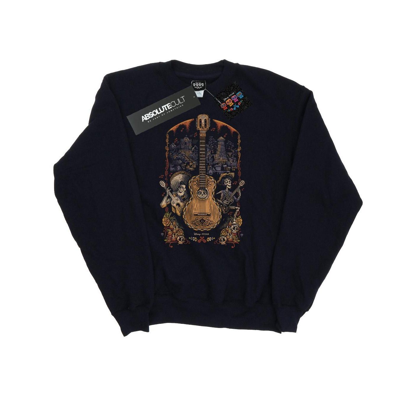 Questa felpa Coco presenta una vivace stampa grafica ispirata all'amato film Disney Pixar. Il design mostra una chitarra centrale circondata da figure scheletriche e motivi intricati, evocando i ricchi temi culturali del film.