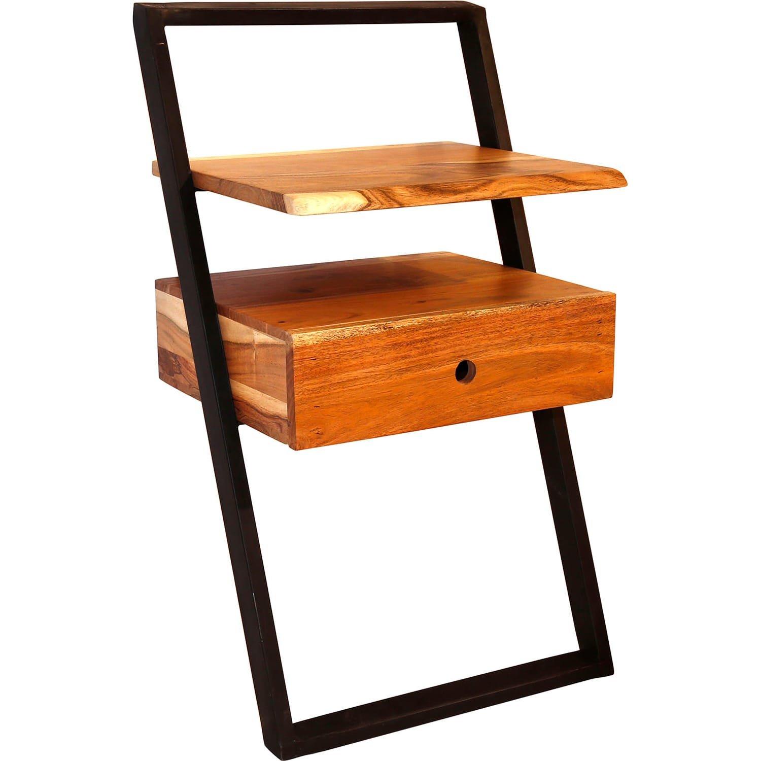 Questo comodino di tendenza "Lean" è realizzato in legno di acacia e metallo verniciato a polvere. Il comodino deve essere appoggiato alla parete ed è dotato di 2 fori per le viti per una maggiore stabilità. Questo comodino è adatto a qualsiasi letto! Il mobile è disponibile anche come mobile TV.