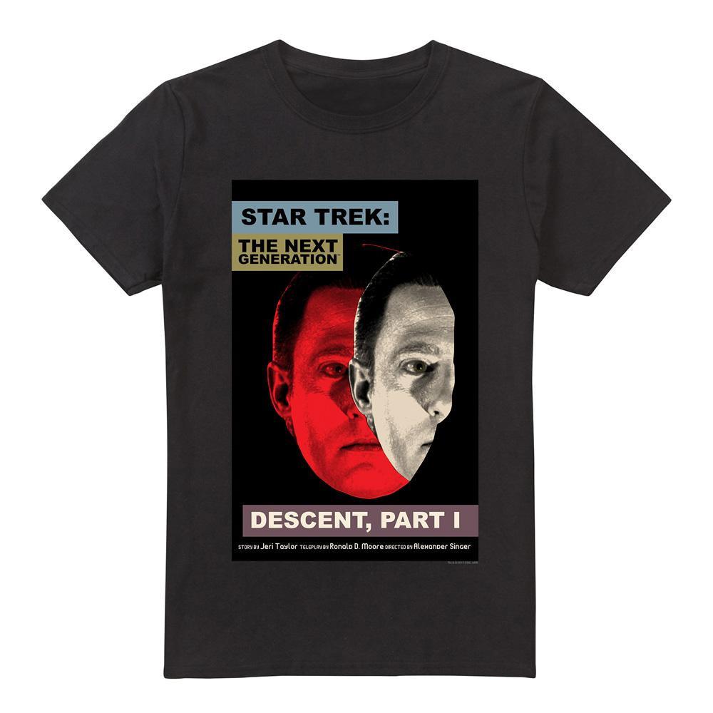 Questa T-shirt presenta una stampa grafica ispirata a "Star Trek: The Next Generation" Stagione 6, Episodio 26, intitolato "Descent, Part I". Il design cattura l'essenza dell'iconica serie di fantascienza, rendendola un capo distintivo per i fan.