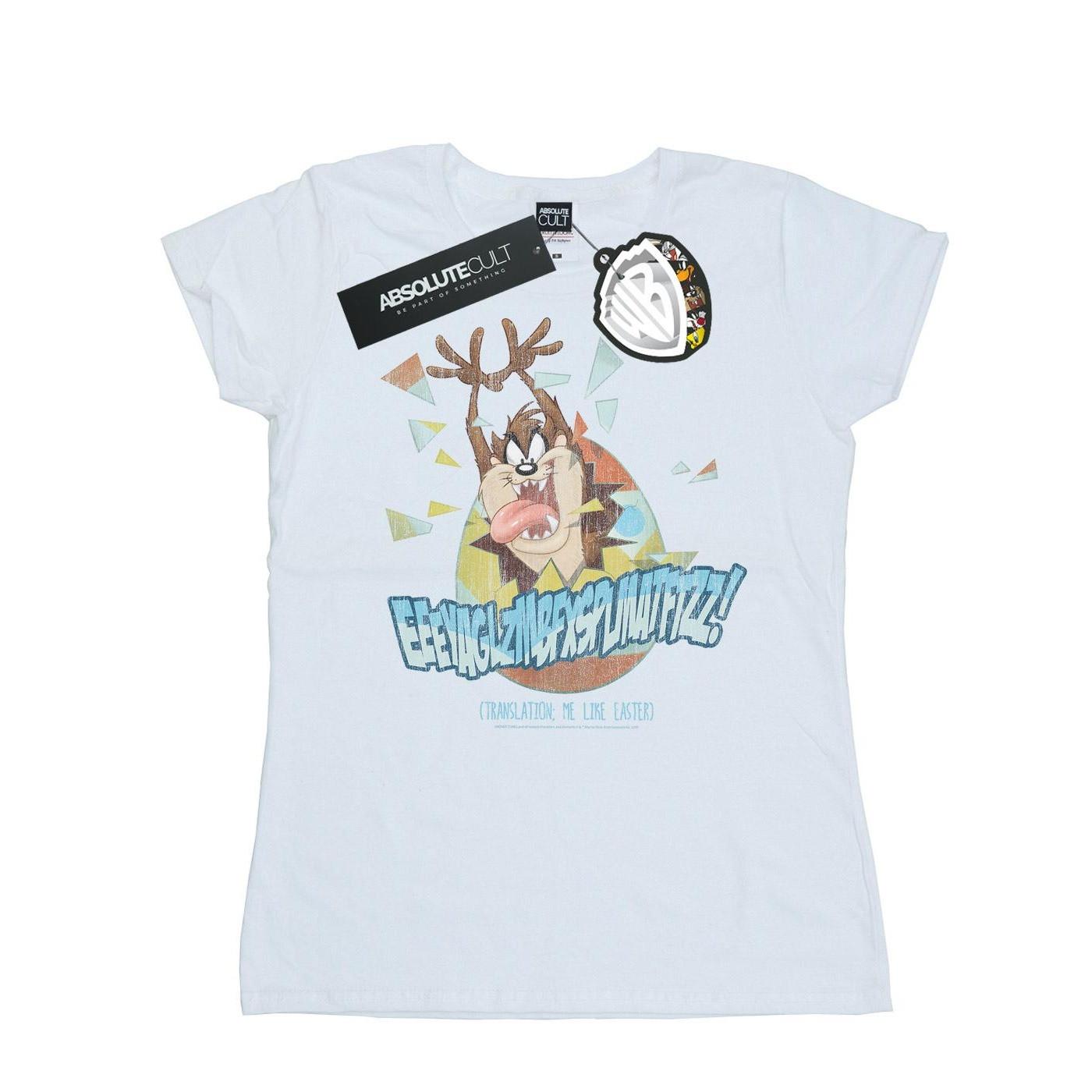 Questa T-shirt presenta una grafica giocosa di Taz, il Diavolo della Tasmania, con la frase "Me Like Easter" stampata sotto. Il design cattura lo spirito energico e divertente del classico personaggio Looney Tunes, rendendolo un'aggiunta allegra a qualsiasi guardaroba casual.