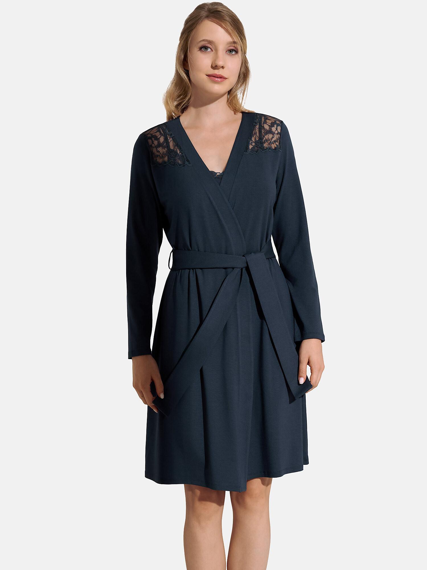 La vestaglia Naty è una vestaglia a maniche lunghe dal taglio comodo ed elegante, realizzata in maglia morbida e confortevole. Presenta un lussuoso pizzo elastico sulle spalle, un leggero drappeggio sul davanti e una cintura per la chiusura. La lunghezza è di circa 100 cm.