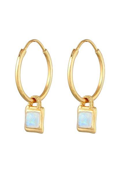 Elli, Ohrringe Creolen Mondstein Edelstein Vintage