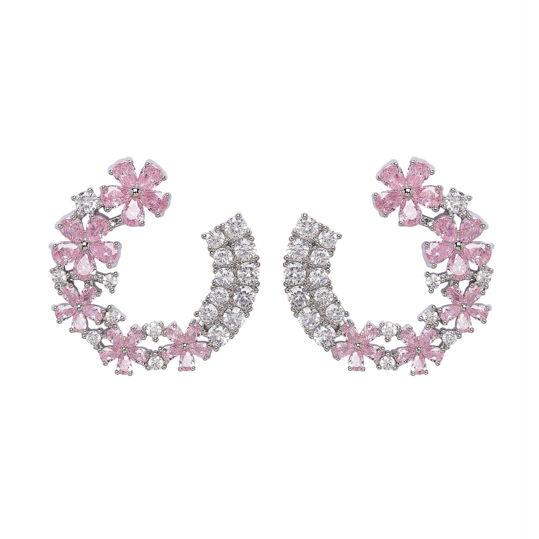 Delicati fiori rosa, impreziositi da pietre scintillanti, circondano con grazia il cerchio, creando un design divertente e accattivante. Questi orecchini sono un'audace dichiarazione di stile, irradiando fascino ed eleganza e sono ideali per aggiungere un tocco di fantasia e raffinatezza a qualsiasi look. Dimensioni: 2,8 cm x 2,9 cm | Placcatura: rodio | Chiusura: perno e retro