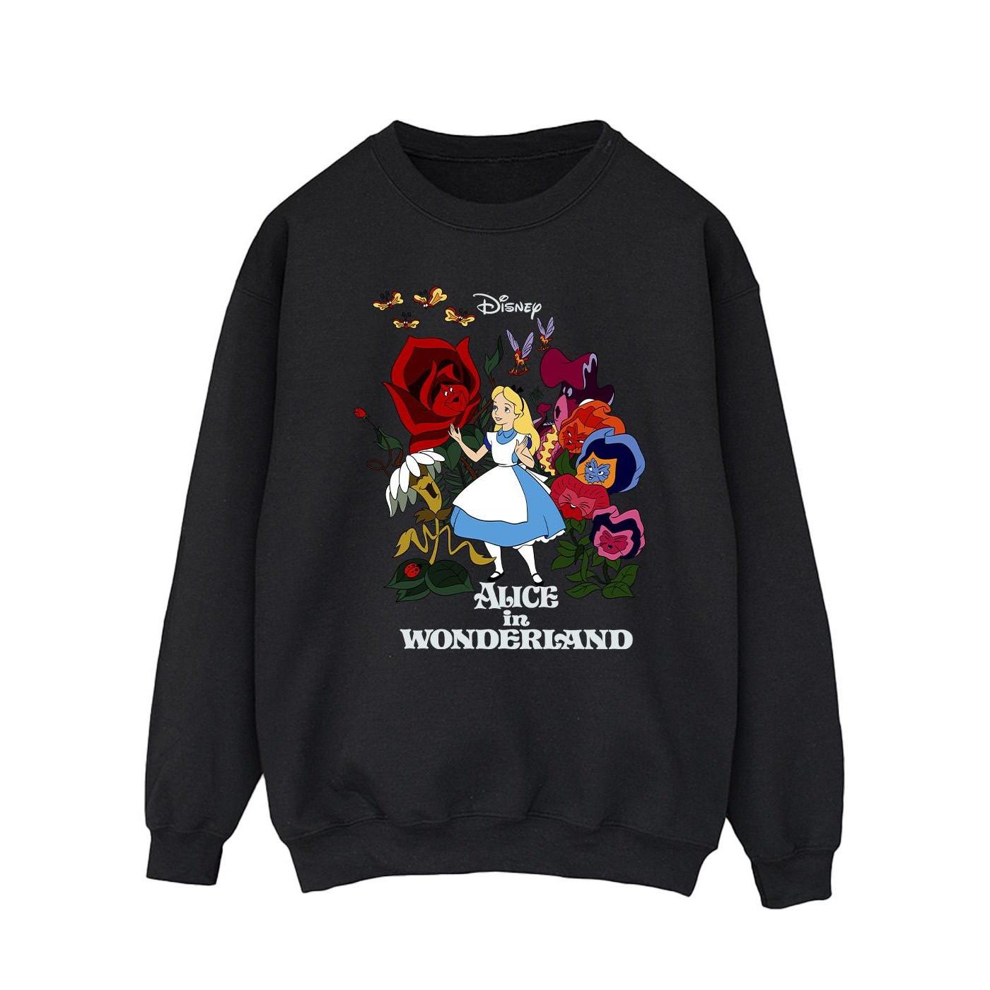 Questa felpa presenta una vivace stampa grafica ispirata ad Alice nel Paese delle Meraviglie di Disney. Il design mostra Alice tra una colorata varietà di fiori, portando un tocco di fantasia e animazione classica all'abbigliamento quotidiano. È un'opzione comoda ed elegante per i fan della storia amata.