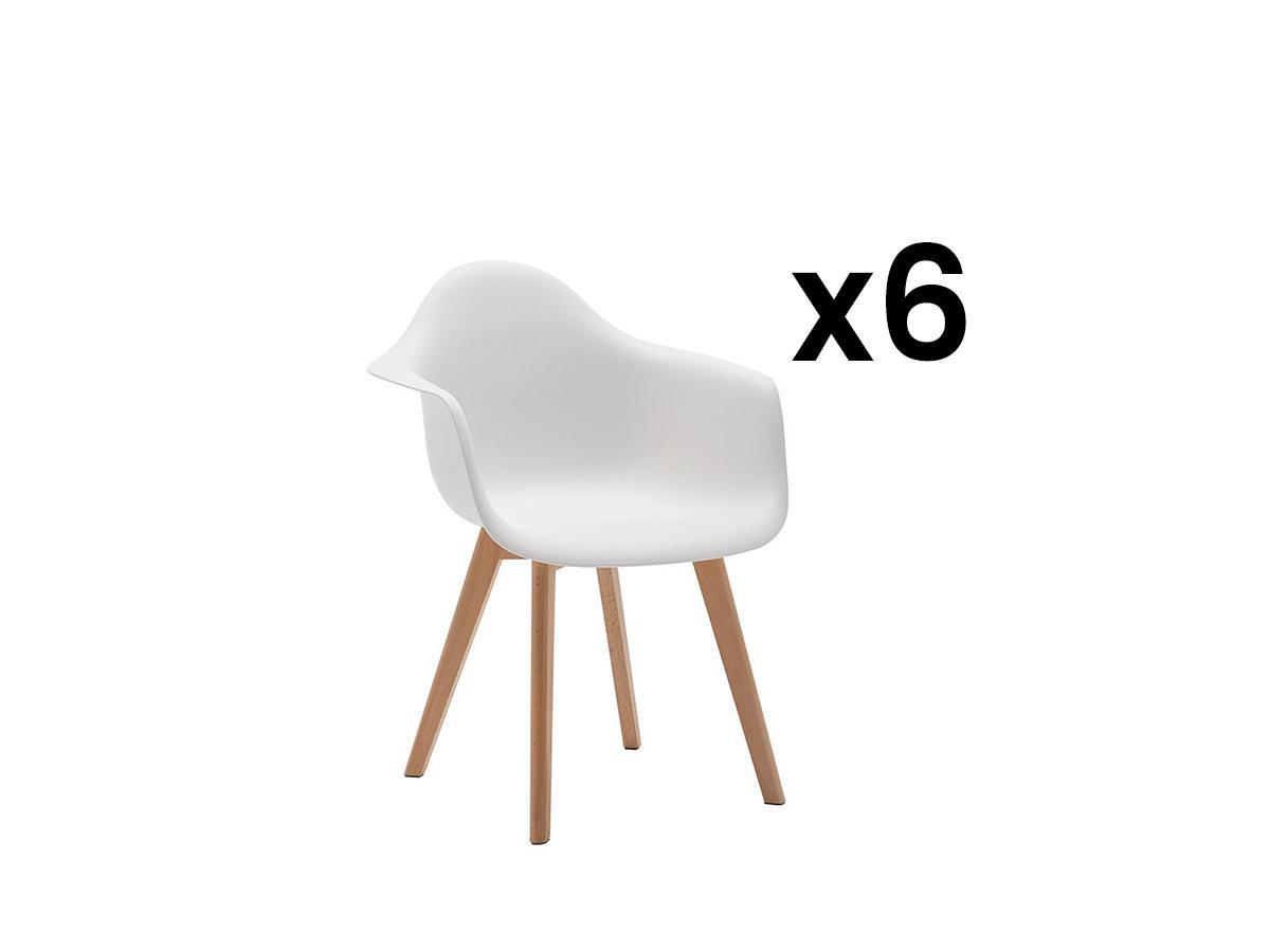 Vente-unique, Sedie con braccioli in Polipropilene e Faggio Bianco Lotto di 6 VIXI