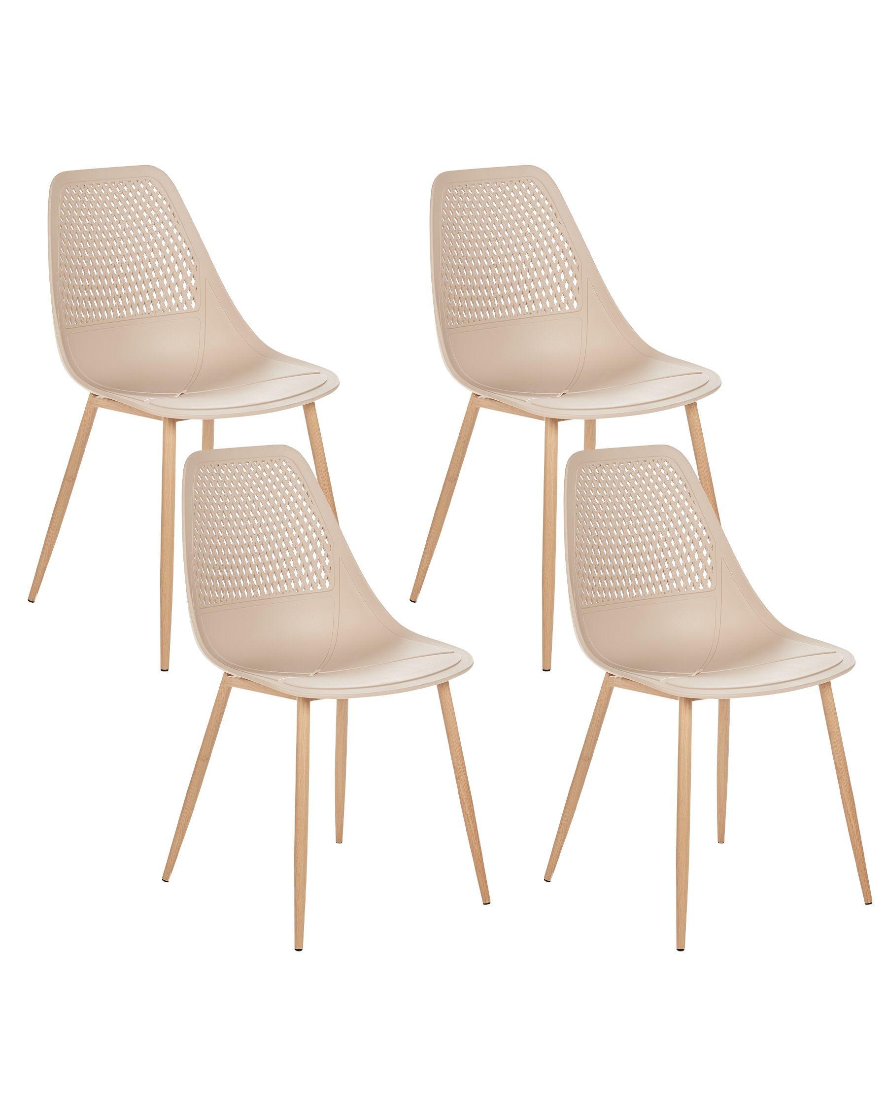Set di sedie moderne senza braccioli. Un set multifunzionale di quattro sedie che si adatta perfettamente a qualsiasi ambiente, dalla zona pranzo all'ufficio. Sono progettate con sedili sintetici e gambe in ferro e offrono stabilità e facilità di pulizia. Il design minimalista delle sedie, accentuato da un motivo traforato sullo schienale, le rende versatili e adatte a qualsiasi spazio.