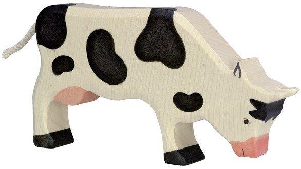 Diese handgefertigte Kuhfigur aus massivem Ahorn- und Buchenholz bietet höchste Qualität und Spielwert. Sie ist sanft abgerundet und mit umweltfreundlichen Farben auf Wasserbasis bemalt. Die robuste und langlebige Konstruktion macht sie ideal für das kreative Spiel.