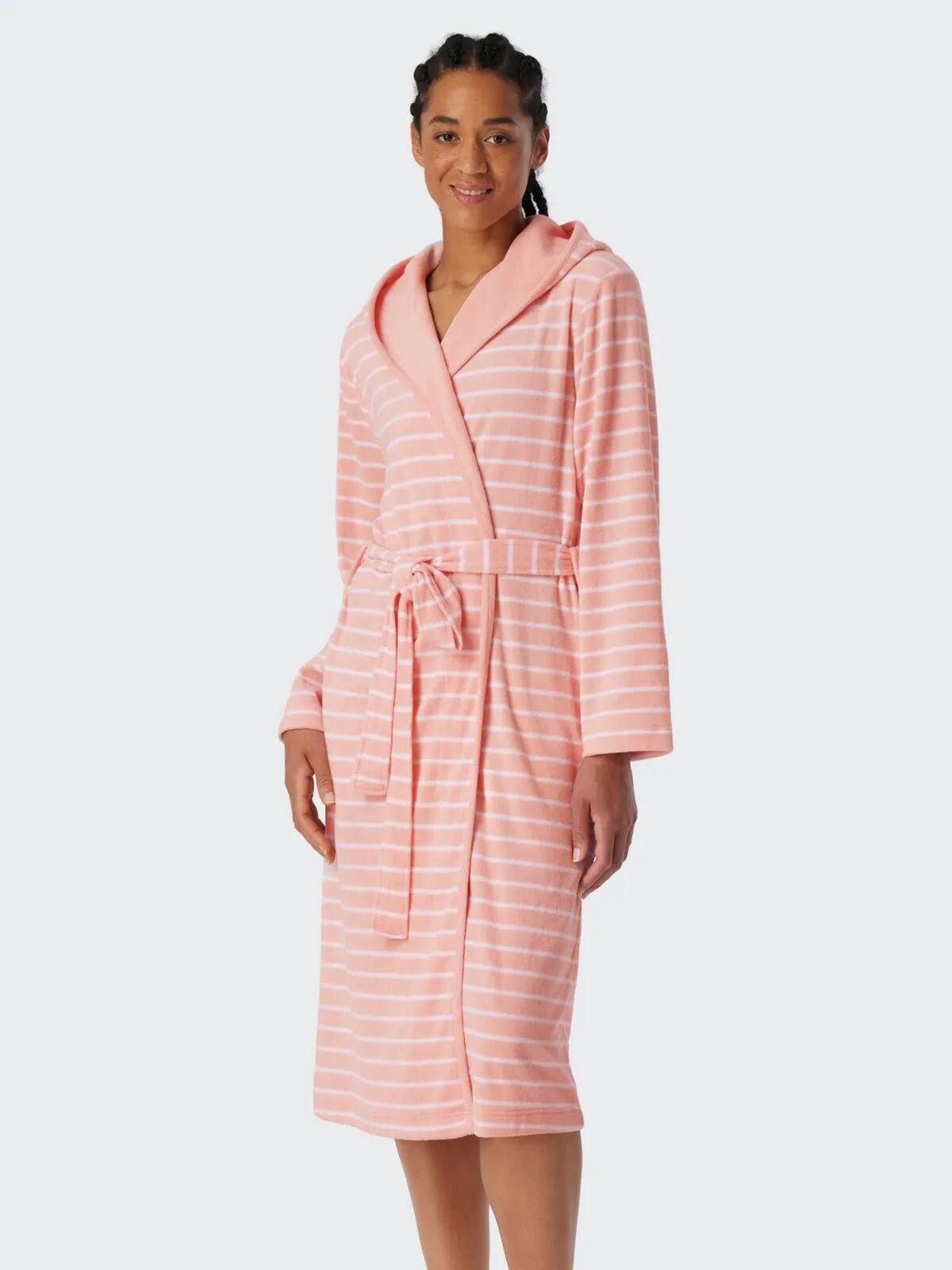 Questa vestaglia da donna è meravigliosamente morbida e leggerissima, perfetta per rilassarsi a casa. È realizzata in spugna leggera con un'alta percentuale di cotone biologico, garantendo una sensazione piacevolmente morbida e accogliente sulla pelle.