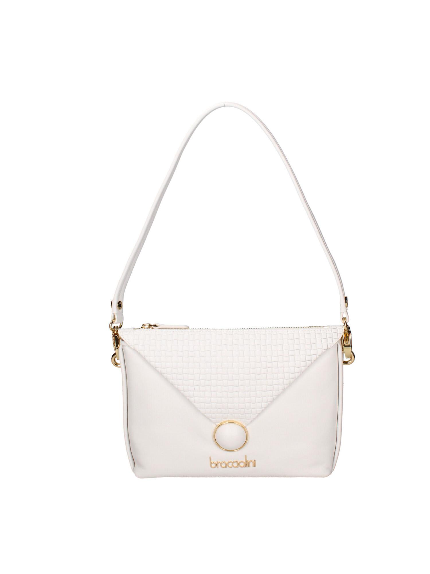 Questa borsa a tracolla presenta un design sofisticato con un dettaglio a trama intrecciata sulla patta, che aggiunge un tocco di eleganza. La borsa è dotata di una chiusura con bottone magnetico per tenere al sicuro gli effetti personali. Un anello dorato prominente e il logo del marchio sono esposti sul davanti, esaltandone l'appeal elegante. La tracolla regolabile consente un trasporto confortevole.