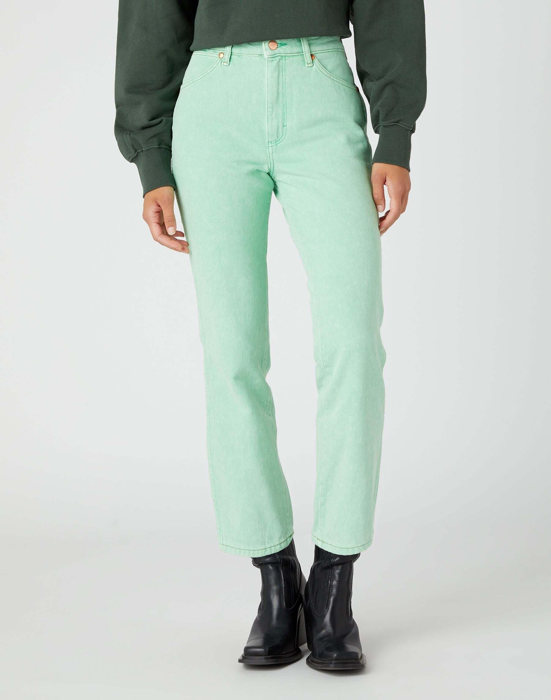 I jeans Wild West presentano una vita alta, una vestibilità aderente, una gamba dritta dalla coscia al ginocchio e una zona alla caviglia accorciata. Questi jeans a vita alta sono realizzati in denim non elasticizzato verde chiaro. Influenzati dai look leggendari che hanno conquistato il West, questi modelli Heritage sono pensati per farsi notare. Il processo di finitura di questo capo EarthWash è stato calcolato da una piattaforma software di terze parti come ecologico in termini di acqua, energia, prodotti chimici e salute sul lavoro. Realizzati al 100% in cotone biologico, che proviene da piante di cotone non OGM coltivate senza pesticidi o fertilizzanti sintetici. Rifiniti con tintura Eco, una tintura naturale prodotta con un impatto ambientale minimo.