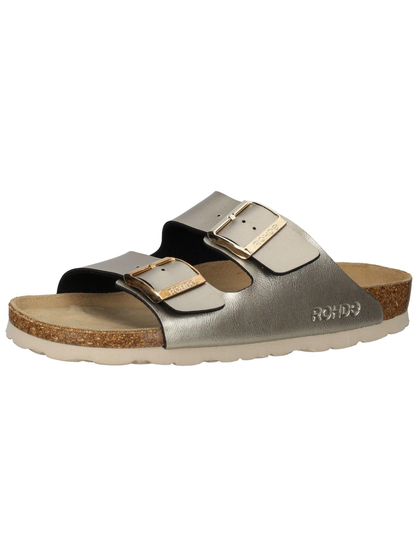 Questi sandali comodi e pratici di Rohde offrono sollievo ai piedi stanchi con un plantare anatomico in pelle scamosciata che regola l'umidità. Queste scarpe adatte all'uso quotidiano, dal look metallico di tendenza, conquisteranno fin dal primo momento.