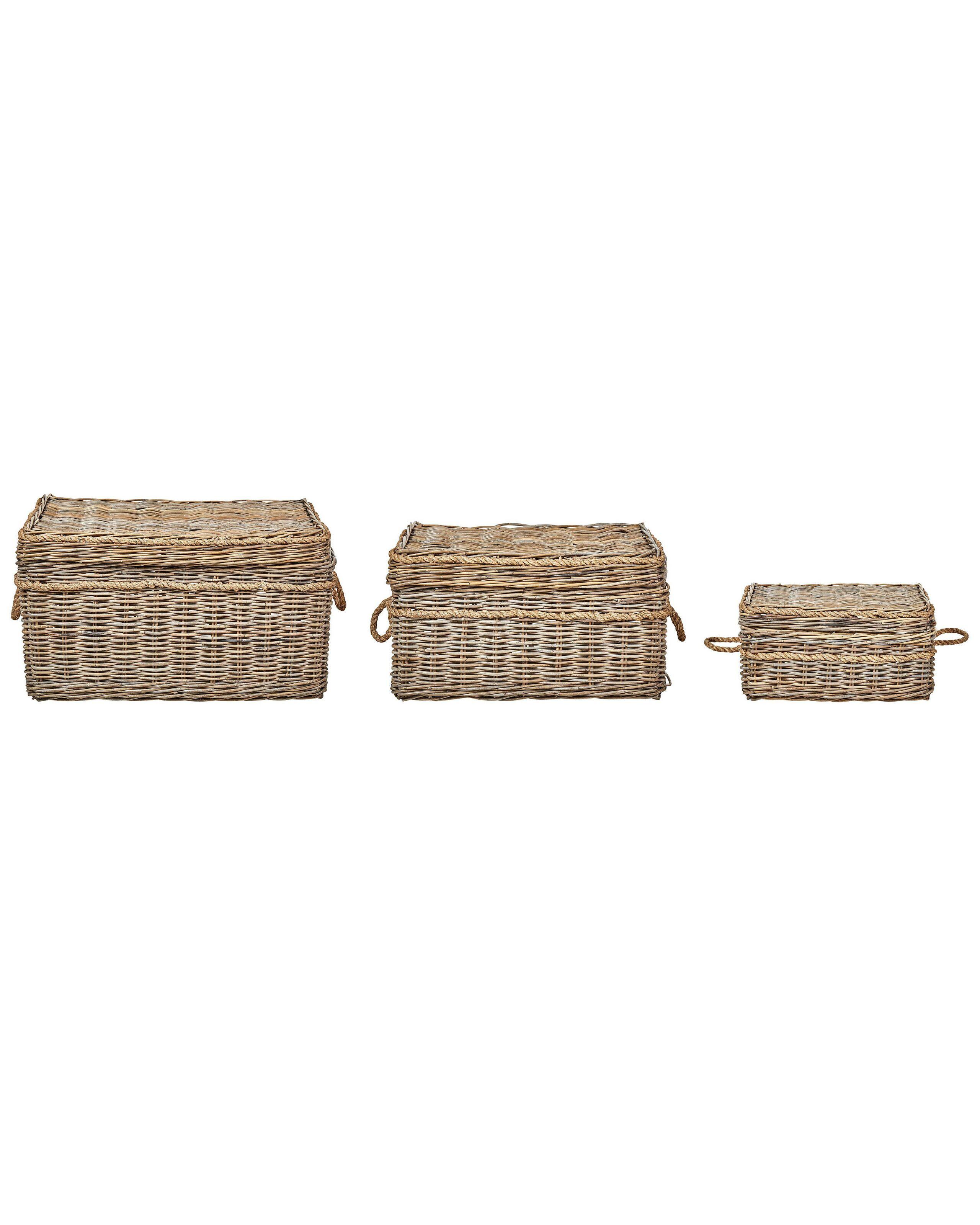 3 scatole in rattan con coperchi e manici. Organizza il tuo spazio e aggiungi un tocco di fascino rustico con questo set di 3 scatole, attentamente selezionate in tre dimensioni diverse per riordinare in modo facile e versatile. Realizzate in rattan, non solo sono eleganti ma anche robuste, facili da mantenere e accessori durature. Queste incantevoli scatole, adornate in tonalità naturali, vantano coperchi e maniglie per un'elegante fusione di funzionalità e stile.