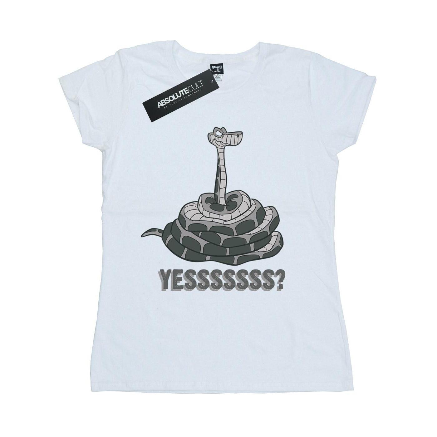 Questa T-shirt presenta un classico girocollo e maniche corte, offrendo una vestibilità comoda e versatile. Il design mostra una stampa grafica di Kaa de Il Libro della Giungla, avvolto con la parola "Yessssss?" sotto, aggiungendo un tocco giocoso e riconoscibile per i fan della storia classica.