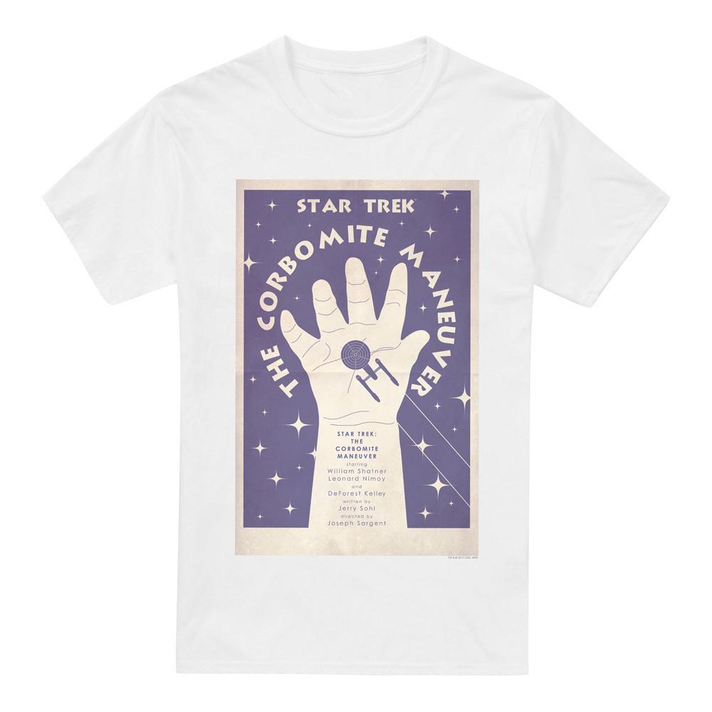 Questa T-shirt presenta una stampa grafica ispirata a "The Corbomite Maneuver", episodio 10 di Star Trek: The Original Series. Il design mostra una mano con un simbolo, circondata da stelle e testo che dettaglia il titolo dell'episodio e i membri chiave del cast. È realizzata al 100% in cotone e offre una vestibilità regolare confortevole.