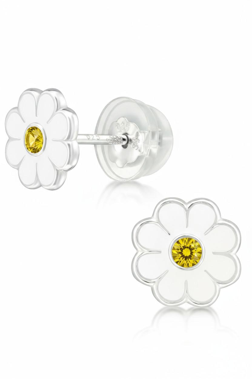 Maxte Premium Ohrstecker Gänseblümchen mit Kristall und Epoxy