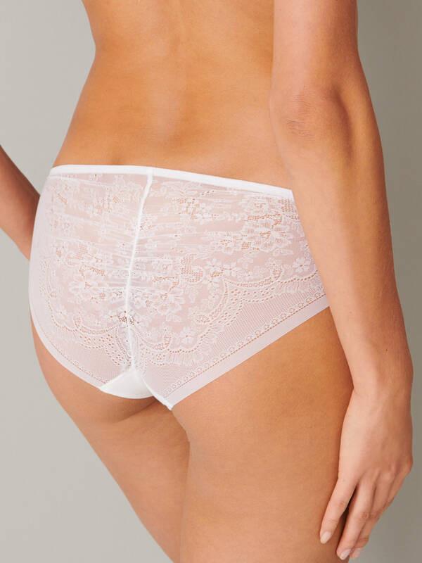 Questo slip combina comfort con un'estetica delicata, caratterizzato da un davanti liscio e dettagli in pizzo intricati sul retro. Il design assicura un look senza cuciture sotto i vestiti, rendendolo un'aggiunta versatile a qualsiasi guardaroba.