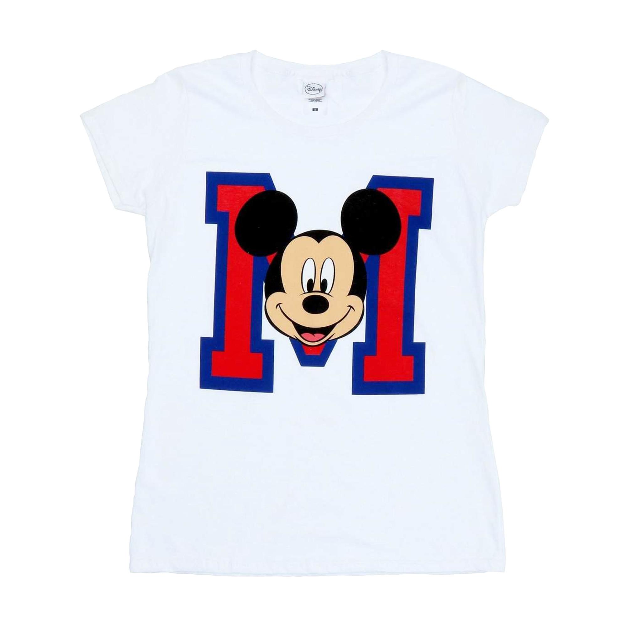 Questa T-shirt presenta un design giocoso con il volto di Topolino integrato in una grande lettera 'M'. Il classico girocollo e le maniche corte la rendono un'aggiunta comoda e versatile per qualsiasi guardaroba casual.