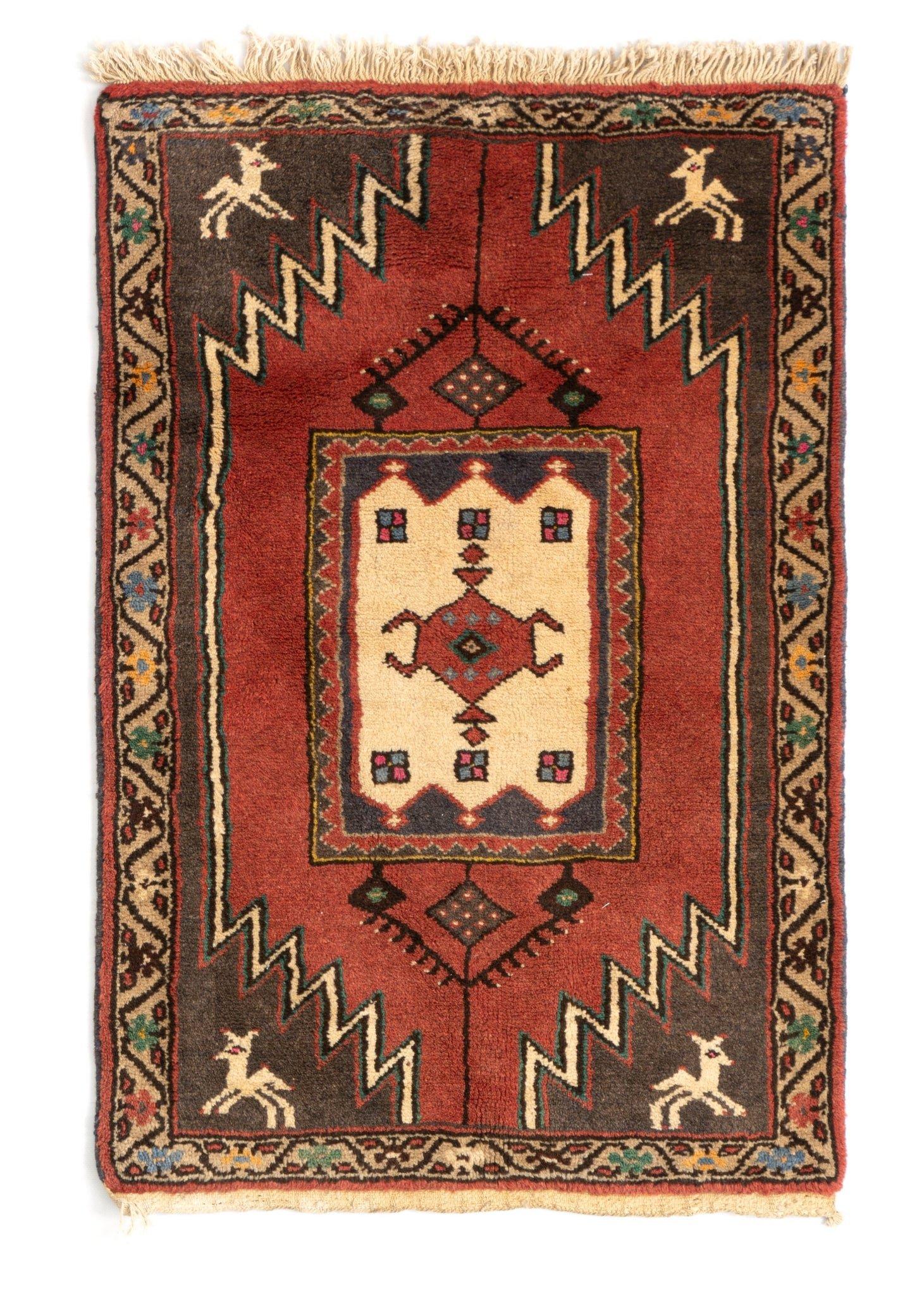 Ein authentischer persischer Teppich, der nur aus natürlichen Materialien mit traditionellen Motiven und Farben hergestellt wird.