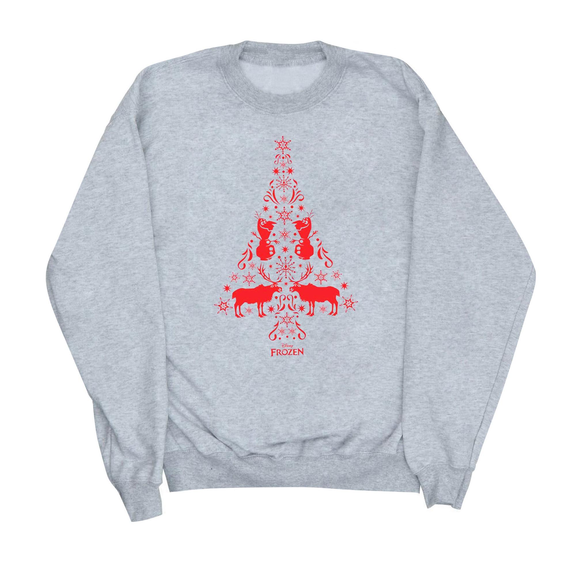 Questa felpa presenta un design festivo a forma di albero di Natale composto da renne e fiocchi di neve, rendendola una scelta perfetta per le celebrazioni natalizie. Il classico girocollo e le maniche lunghe offrono una vestibilità comoda e rilassata.