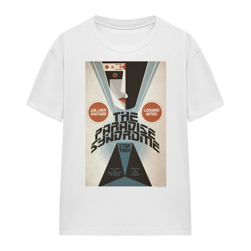 Questa T-shirt presenta una stampa grafica unica ispirata a "The Paradise Syndrome", l'episodio 58 di Star Trek: The Original Series. Il design mostra una rappresentazione stilizzata dei temi e dei personaggi dell'episodio, inclusi William Shatner e Leonard Nimoy, in uno stile artistico retro-futuristico.