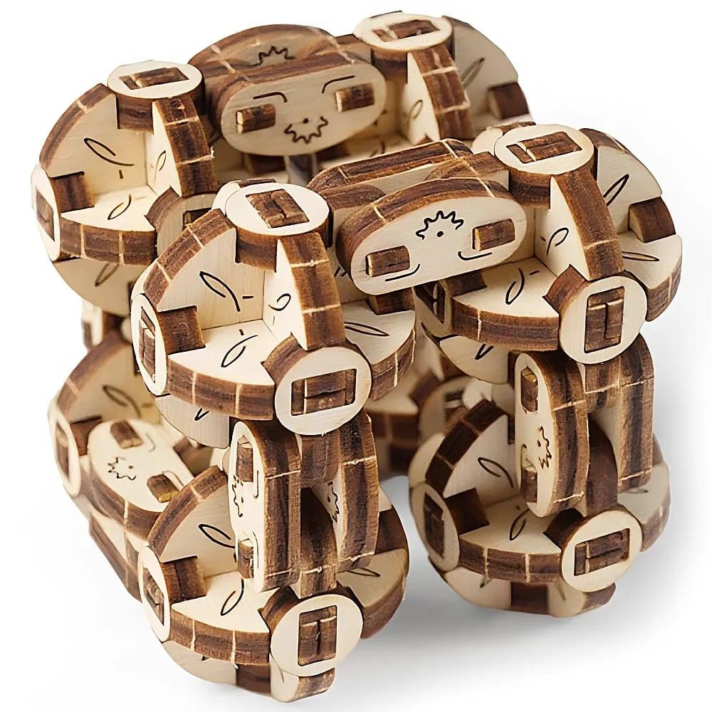 Der Flexi-Würfel ist ein mechanisches Puzzle im Steampunk-Stil, das aus 144 Teilen besteht. Jedes Stück ist beweglich und ermöglicht die Bildung unterschiedlicher geometrischer Formen. Mit einem Produktmass von 11,5 x 6 x 2,8 cm bietet er eine handliche Grösse für kreative Herausforderungen.